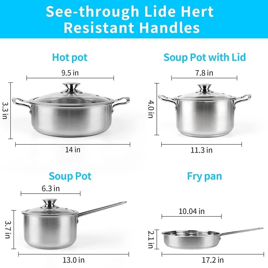 7 Pieces Set Silver Stainless Steel Cookware set.